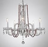 | ✚✚✚ CRYSTAL CHANDELIER CHANDELIERS LIGHTING WITH RED COLOR CRYSTAL! THIS MAGNIFICENT CHANDELIER IS ALL 100% CRYSTAL. Nothing is quite as elegant as the fine crystal chandeliers that gave sparkle to brilliant evenings at palaces and manor houses across Europe. This beautiful chandelier is decorated with 100% crystal that capture and reflect the light of the candle bulbs, each resting in a scalloped bobache. The crystal glass arms of this wonderful chandelier give it a look of timeless elegance that is sure to lend a special atmosphere in any home.Assembly Required