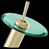 | ✚✚✚ Faucet sink Antique Brass Brass, 7 inch Waterfall Faucet, Green Disk Single Hole Waterfall Faucets: Perfect for recessed & above counter sinks. Solid brass construction with a tarnish resistant Antique Brass finish. Top rated high quality internal cartridge tested to last 500,000 cycles. Features a modern solid brass joystick style handle. Comes complete with supply lines & mounting hardware. Purchase additional round glass or ceramic disks to change your faucet look! Overall height is 7 inches.